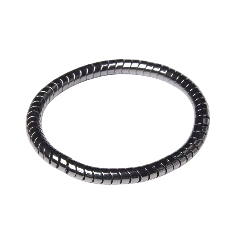 - Masculino y Profesional: Con un acabado mate o pulido en titanio gris o negro, presenta líneas rectas y geométricas que evocan fuerza industrial y sofisticación. Los imanes de neodimio están incrustados de forma discreta alrededor de la banda, creando un patrón sutil de "puntos de poder" que añade un elemento táctil y visual sin sobrecargar – ideal para combinar con relojes deportivos o trajes ejecutivos.